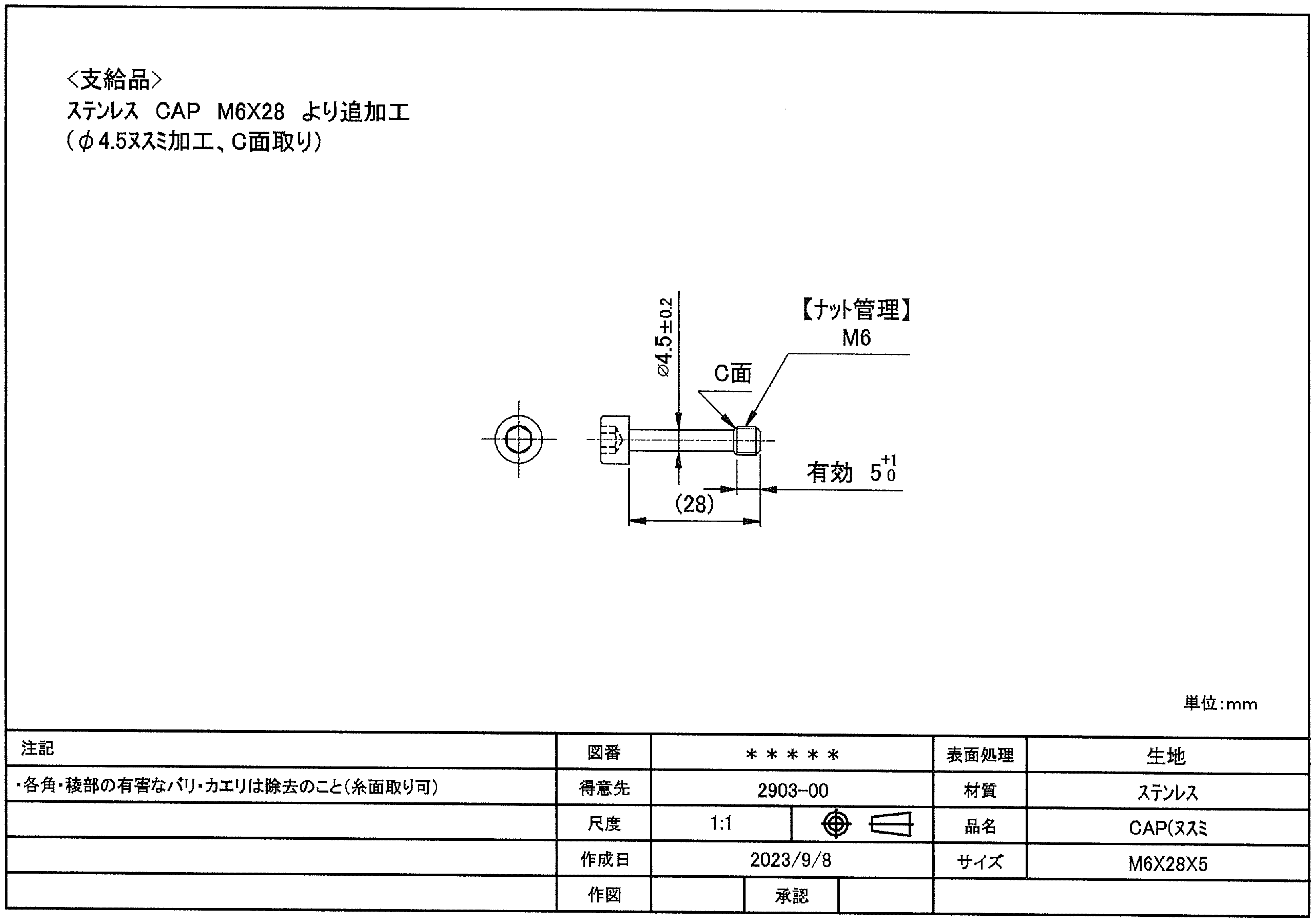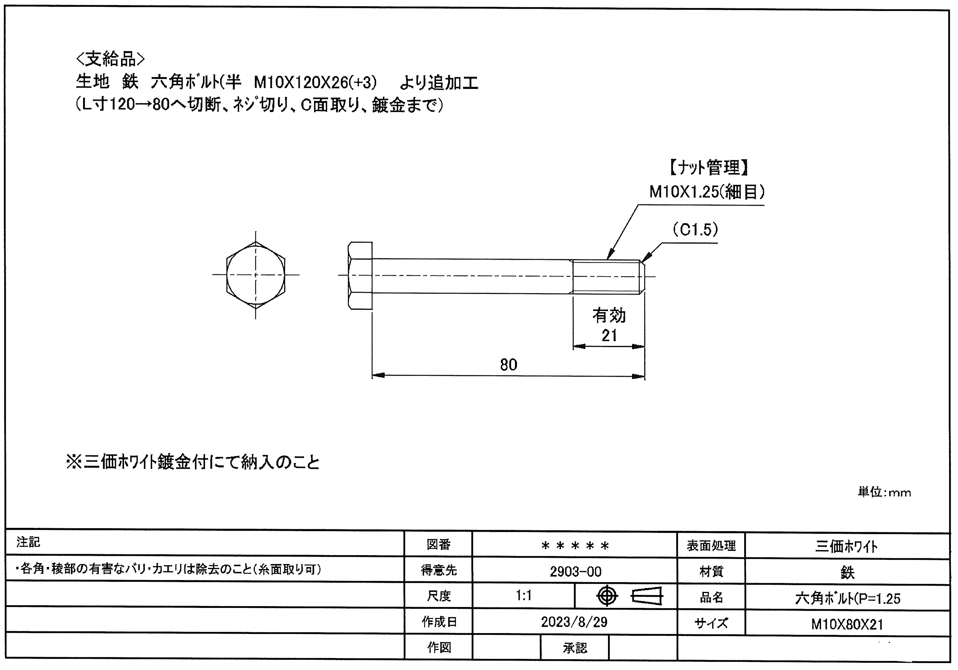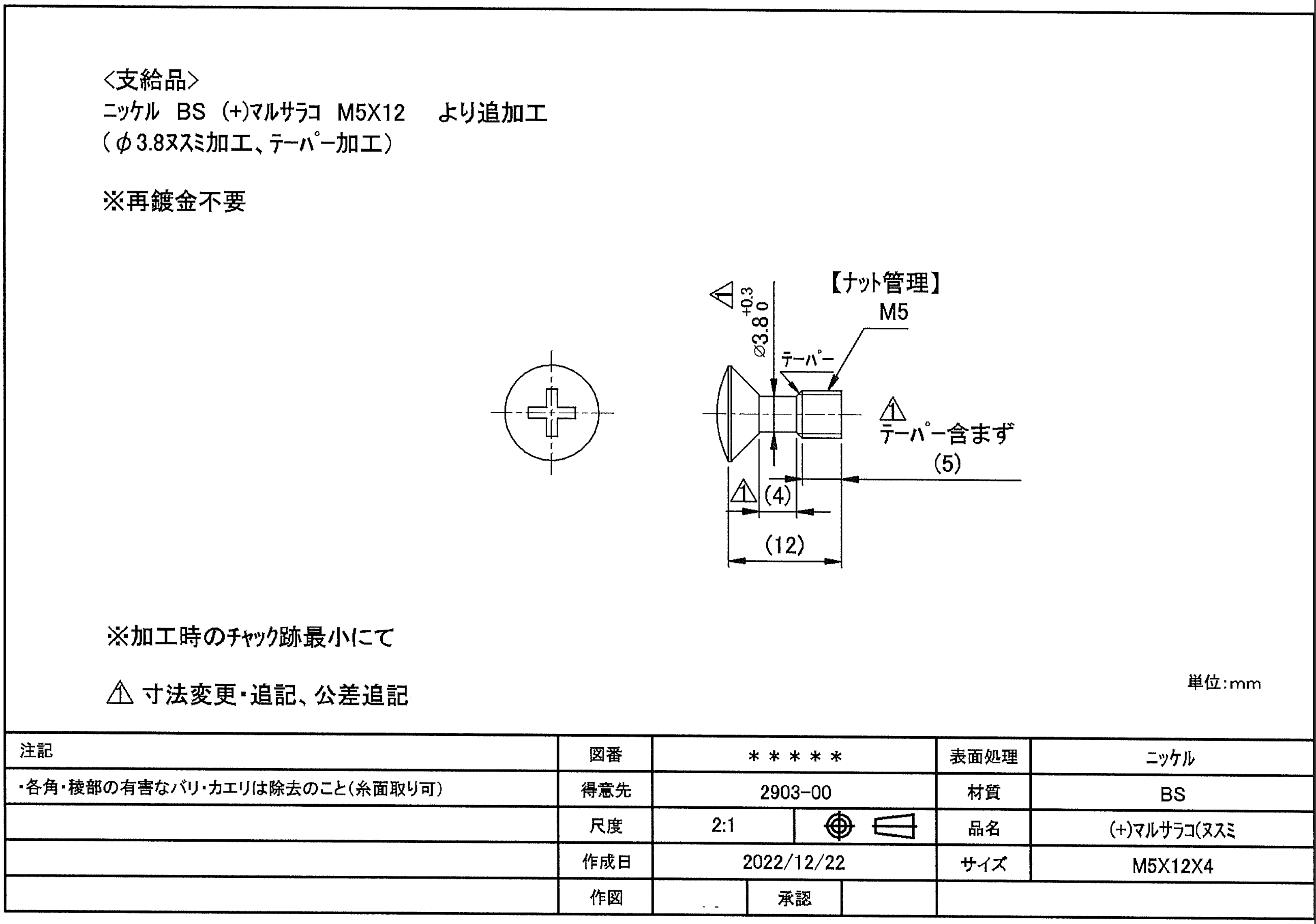 ネジ業界には、他業界とは少し異なる独特の商習慣がいくつか存在します。そのひとつが「追加工」といわれるネジ部品の加工領域です。昭和から続く製造装置には世の中に売っていない特殊な図面部品が多く使用されており、その中に通常売っている既製品ねじを少しだけ加工した特殊図面などが何点も存在しております。